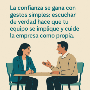 En este artículo descubrirás por qué la confianza es la base de la productividad, qué errores la destruyen y cómo puedes aplicar la escucha activa para recuperar el compromiso de tu equipo y hacer que tu empresa avance sin ansiedad.